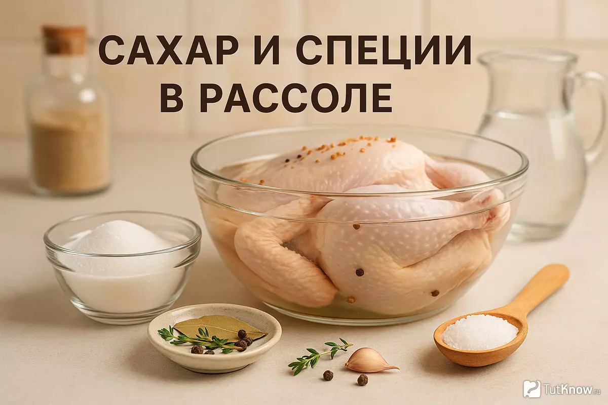 Сахар и ароматические добавки делают рассол более сбалансированным и помогают добиться выразительного вкуса. Хотя сахар не является обязательным компонентом, его присутствие заметно улучшает итоговый результат и влияет на внешний вид готовой птицы.