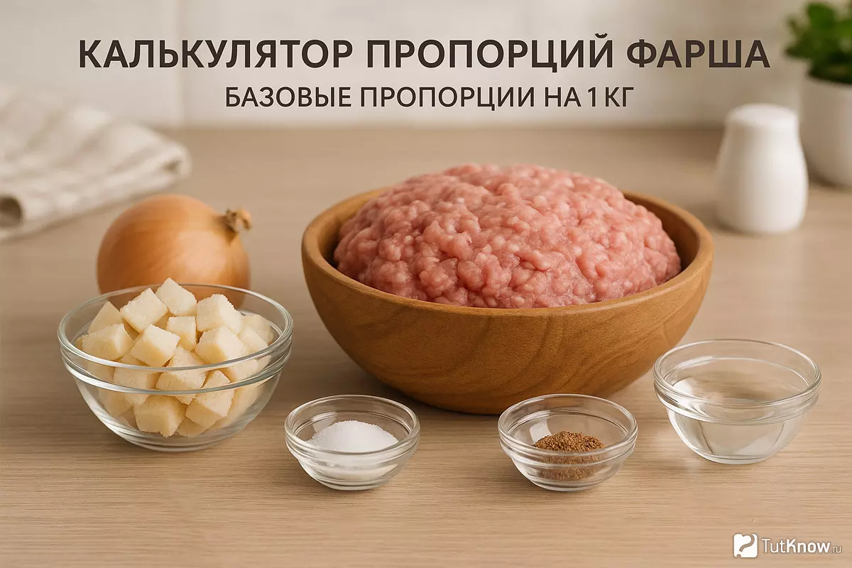 Базовые пропорции на 1 кг служат отправной точкой. Калькулятор опирается на эти нормы и подстраивает их под конкретный вес фарша, тип блюда и желаемую сочность.
