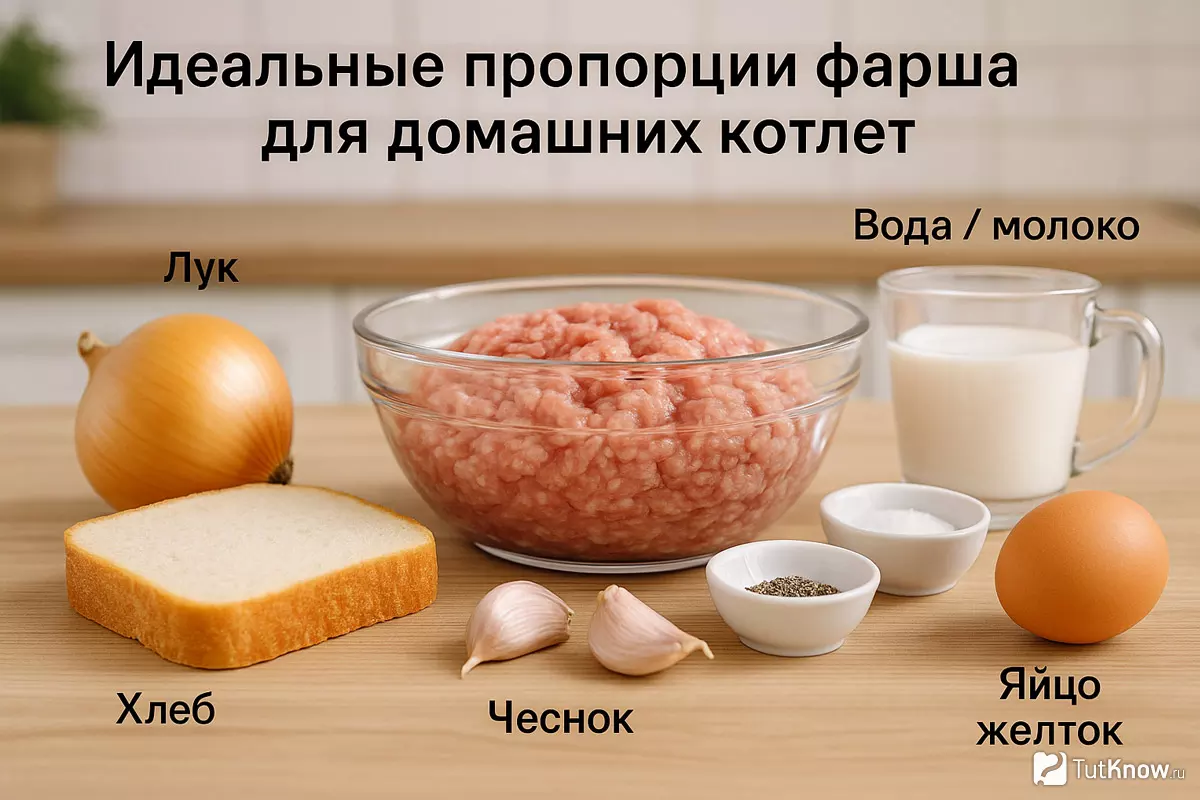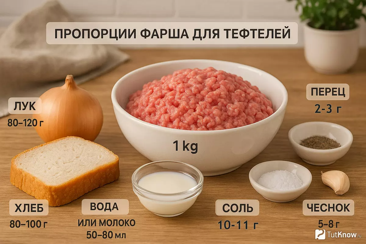 Пропорции фарша на 1 кг помогают сразу задать правильный баланс между мясом, луком, хлебом, солью, водой и специями. Если соблюдать базовые нормы, котлеты, тефтели и фрикадельки получаются сочными, держат форму и не разваливаются при жарке или тушении.