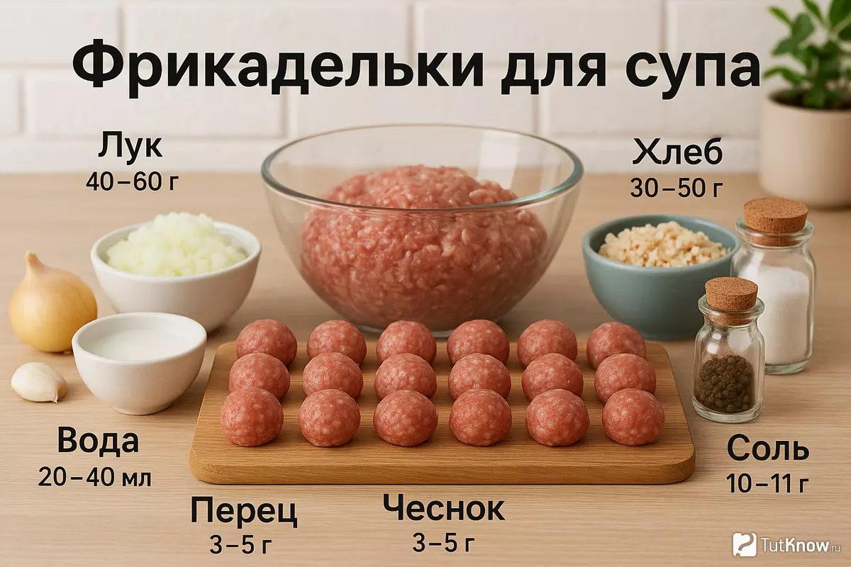 - для фрикаделек нормы аккуратно снижены, чтобы тушка хорошо держала форму в супе;