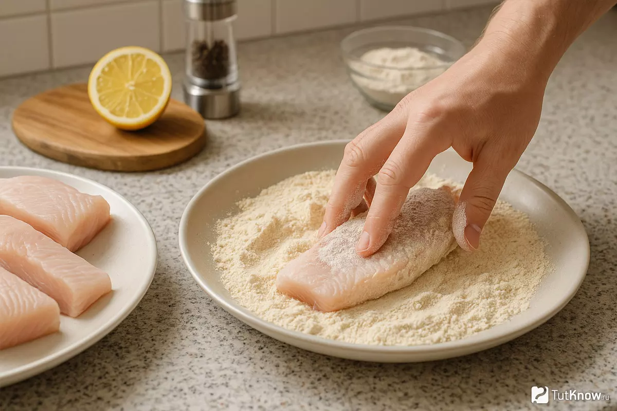 Рецепт 2: Рыба в лёгкой панировке (мука + крахмал)