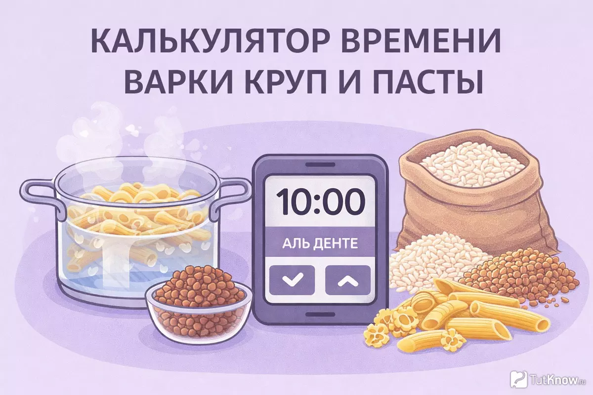 Калькулятор не заменяет пробу продукта, а помогает попасть в правильный момент проверки и избежать переваривания пасты или недоваривания крупы.