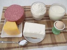 6. Молоко налейте в миску, добавьте 2 сырых яйца и посолите.