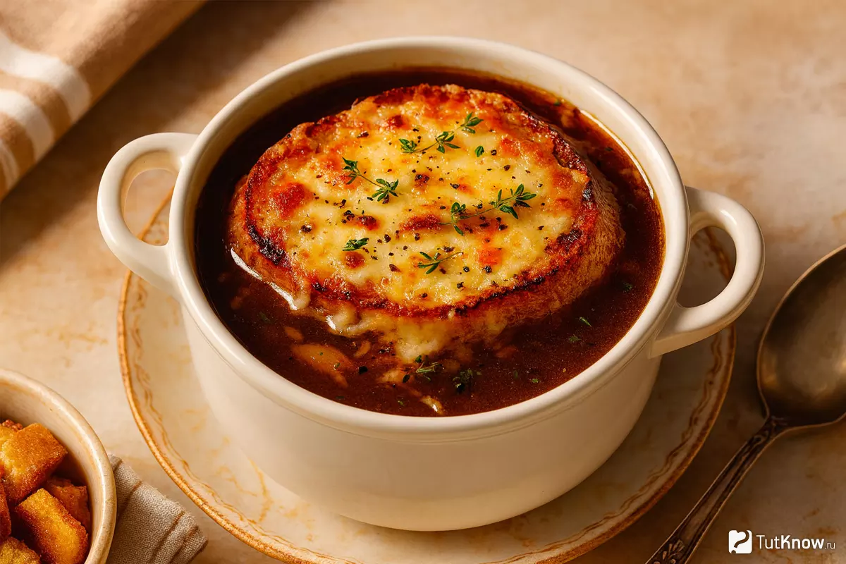 Французский луковый суп сразу вызывает в воображении уютный вечер в парижском бистро. Этот ароматный суп, приготовленный из карамелизированного лука и говяжьего бульона, согреет в холодный день. Его нежная текстура и богатый вкус создают атмосферу домашнего уюта и гастрономического наслаждения, превращая простые ингредиенты в кулинарный шедевр.