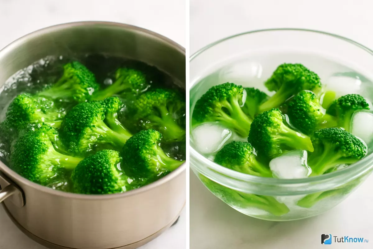 Бланшировка — это ключевой шаг для сохранения цвета. Погрузите брокколи в кипящую воду на 2-3 минуты, затем сразу же перенесите её в ледяную воду. Этот процесс не только сохраняет яркость, но и улучшает текстуру овощей.