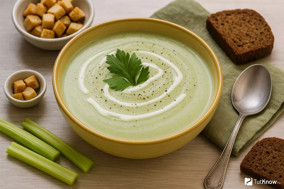 Этот суп-пюре отличается нежной текстурой и насыщенным вкусом сельдерея, который прекрасно дополняется сливочной ноткой. Хранить его можно в холодильнике до трех дней, но я рекомендую съесть его свежеприготовленным, чтобы насладиться всеми вкусовыми нюансами. Лично я люблю подавать его с хрустящими гренками или свежим хлебом.