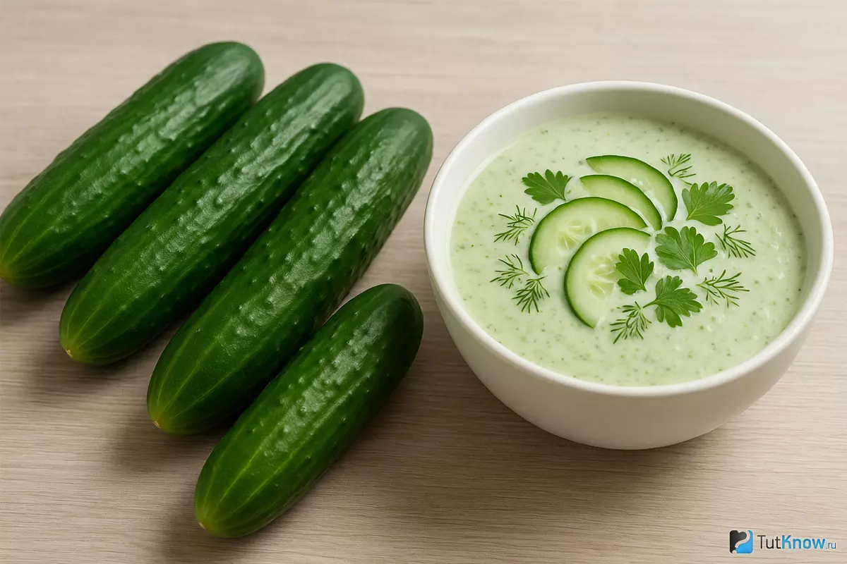 Холодный суп-крем из огурцов — это освежающее блюдо, идеально подходящее для летнего обеда или ужина. Основные ингредиенты включают свежие огурцы, йогурт или сметану, зелень и специи, что придаёт первому блюду лёгкость и пикантность. Блюдо не требует термической обработки, сохраняя все полезные свойства овощей. Такой супчик особенно уместен в жару, когда хочется чего-то лёгкого и охлаждающего.