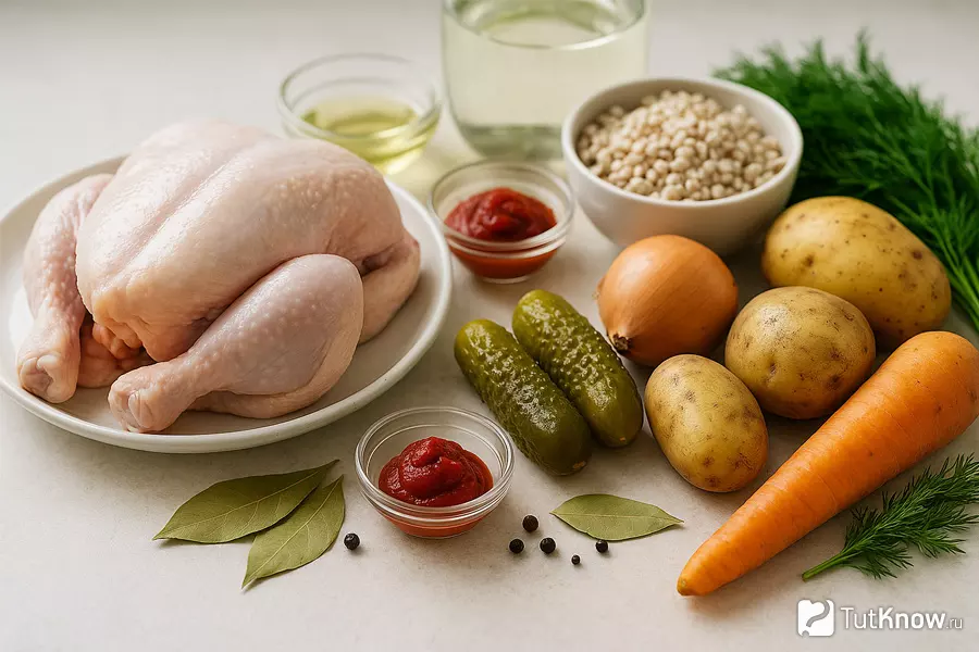 Рассольник с курицей и солеными огурцами — традиционный густой суп русской кухни. Его готовят на мясном бульоне с добавлением перловки, картофеля и моркови. Главная особенность — соленые огурцы, придающие блюду кисловатый вкус. Питательное и сытное, оно особенно уместно в холодное время года. Исторически рассольник упоминается в кулинарных книгах XIX века как популярное повседневное блюдо.
