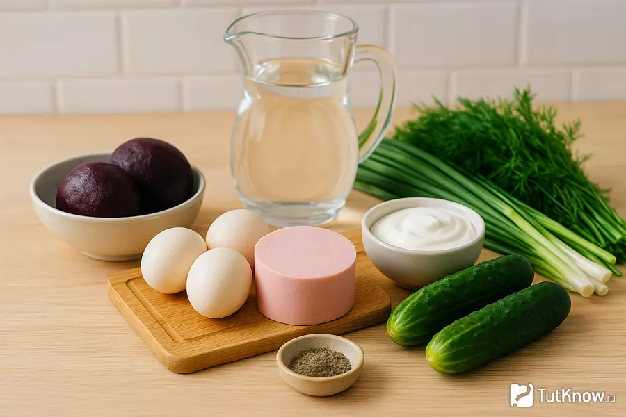 Холодный свекольник на воде со сметаной с варёной колбасой и яйцом — это летний суп, популярный в восточноевропейской кухне. Основные ингредиенты включают свёклу, колбасу, яйца, свежие огурцы и зелень. Блюдо освежает и отличается низкой калорийностью, что делает его идеальным для жаркой погоды. В отличие от борща, свекольник готовится быстро и сохраняет больше витаминов, благодаря минимальной термической обработке.