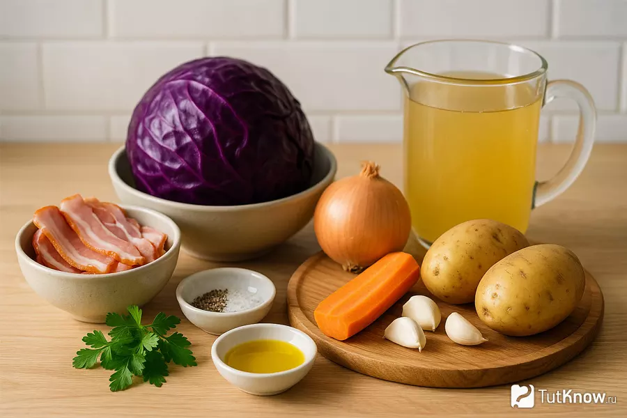 Суп из краснокочанной капусты с беконом — это питательное блюдо, объединяющее насыщенный вкус овощей и аромат копченого мяса. Основные ингредиенты, такие как капуста, бекон, лук и картофель, придают супу богатую текстуру и вкус. Это блюдо особенно полезно зимой благодаря витаминам и микроэлементам в капусте. В Восточной Европе такие супы традиционно были частью повседневного рациона.