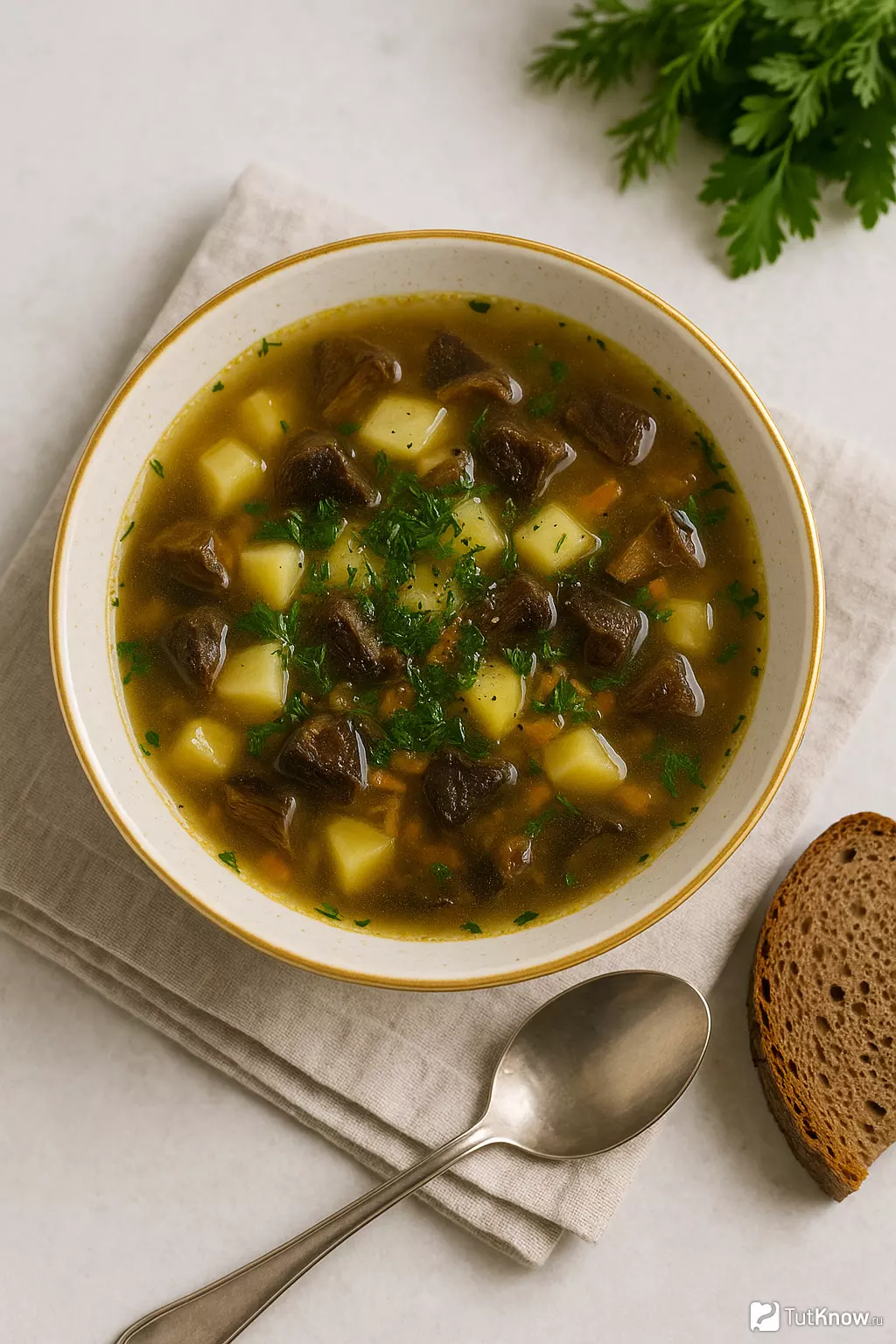Сушёные грибы сами по себе обладают богатым и насыщенным вкусом, который можно усилить без использования мясного бульона. Один из способов — это правильно подготовить грибы перед добавлением в суп. Замочите их в тёплой воде на 20-30 минут, чтобы они стали мягче и отдали свой аромат. Воду, в которой замачивались грибы, можно использовать в качестве основы для супа, ведь она насыщена грибными нотками.