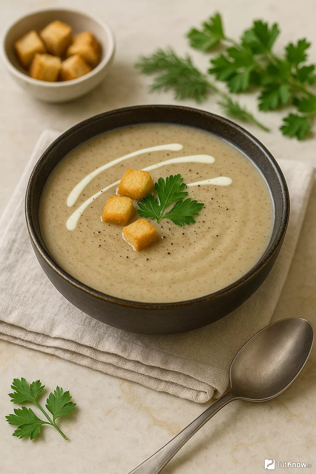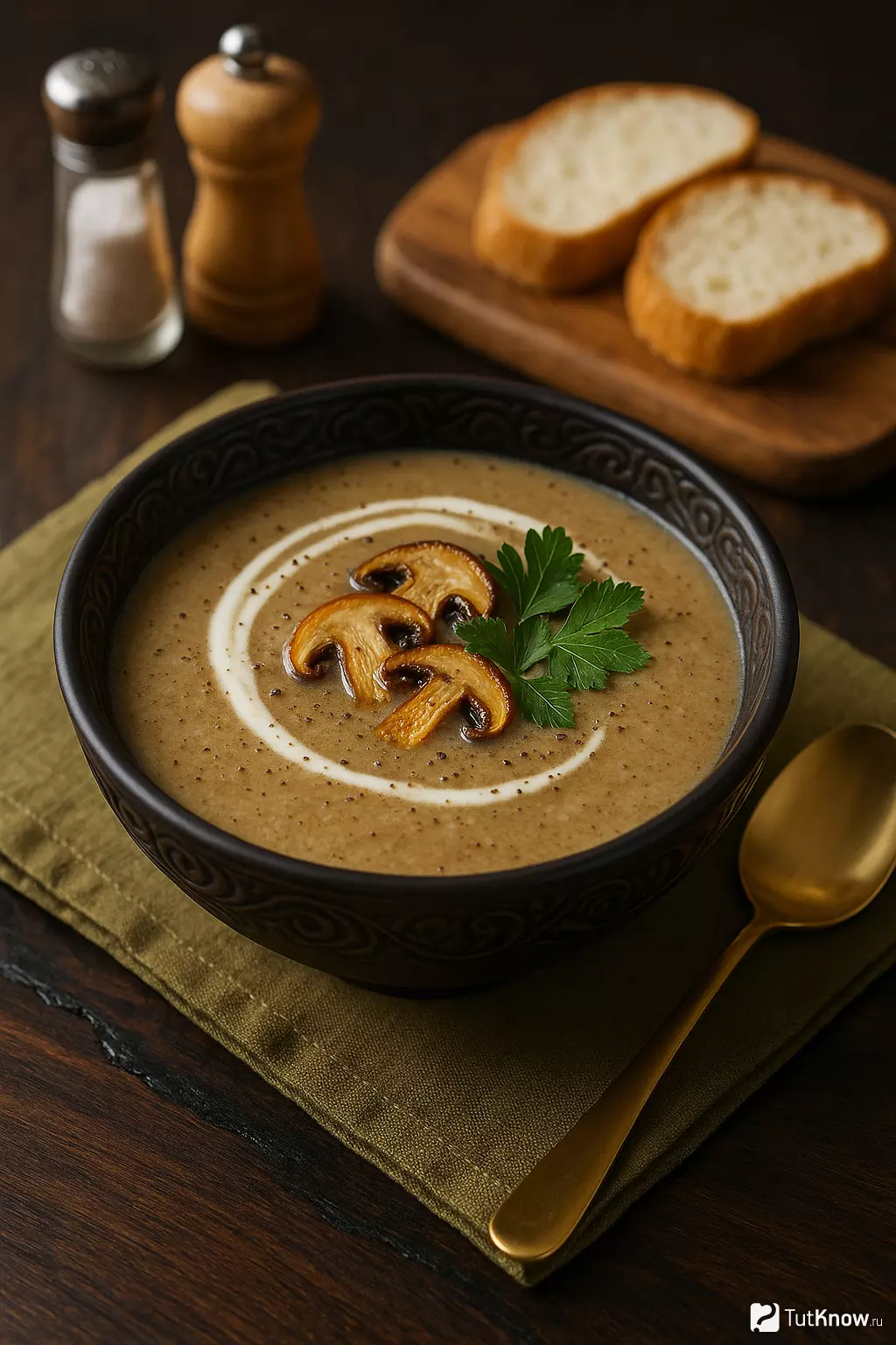 Крем-суп из сушёных белых грибов — это изысканное блюдо, которое требует соответствующей сервировки. Чтобы подчеркнуть его вкус и аромат, стоит выбрать подходящие дополнения и сервировочные элементы.