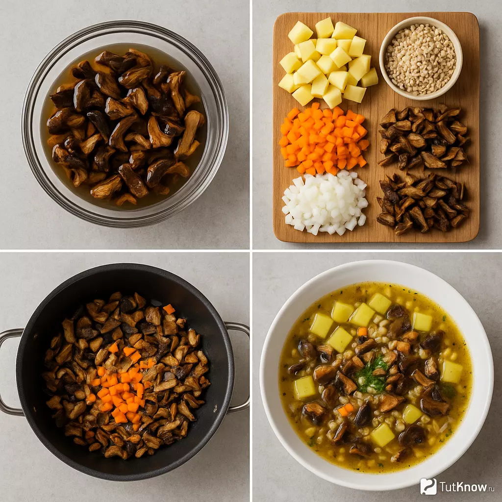 Пошаговый рецепт супа из сушёных грибов с ячневой крупой
