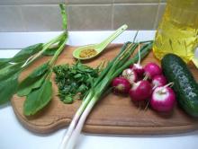 Если вы хотите устроить разгрузочный день после обильных застолий с калорийными закусками и тортами, то этот салат как раз для вас. Для рецепта отбирайте молодые нежные листья, в них содержится меньше щавелевой кислоты. Они прекрасно подходят для приготовления салатов, в то время как большие листики менее сочные, поэтому их лучше использовать в тушеном виде.