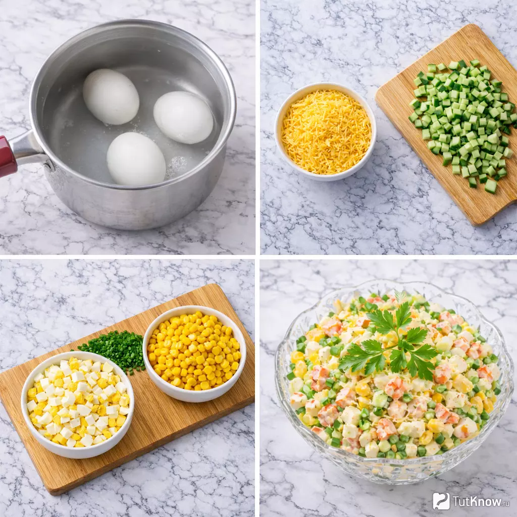 В результате получается нежный, сочный салат с лёгкой сладостью кукурузы, свежестью огурца и сливочными нотками сыра. Хранить его лучше в холодильнике не дольше суток — тогда он останется свежим и аппетитным. Такой салат отлично смотрится на праздничном столе, особенно если подать его в креманках или кольцами. Я люблю готовить его заранее, чтобы вкусы как следует «подружились» — тогда закуска получается особенно гармоничной!