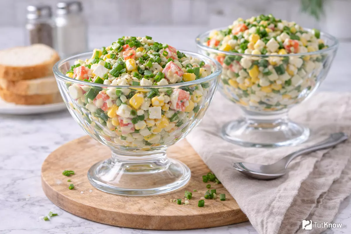 | Сочетаемость с крабовыми палочками | Создаёт свежий контраст, делает блюдо более лёгким | Добавляет пикантность, хорошо сочетается с майонезом |