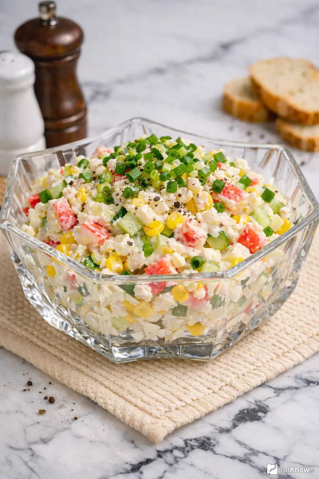 В результате получается нежный, свежий и сытный салат с приятной текстурой: рис делает его плотнее, а огурец добавляет хруст и легкость. Такой салат отлично хранится в холодильнике до суток, если не заправлять его майонезом заранее. Я люблю подавать его порционно в креманках или на листьях салата — смотрится аппетитно и празднично даже в будний день!