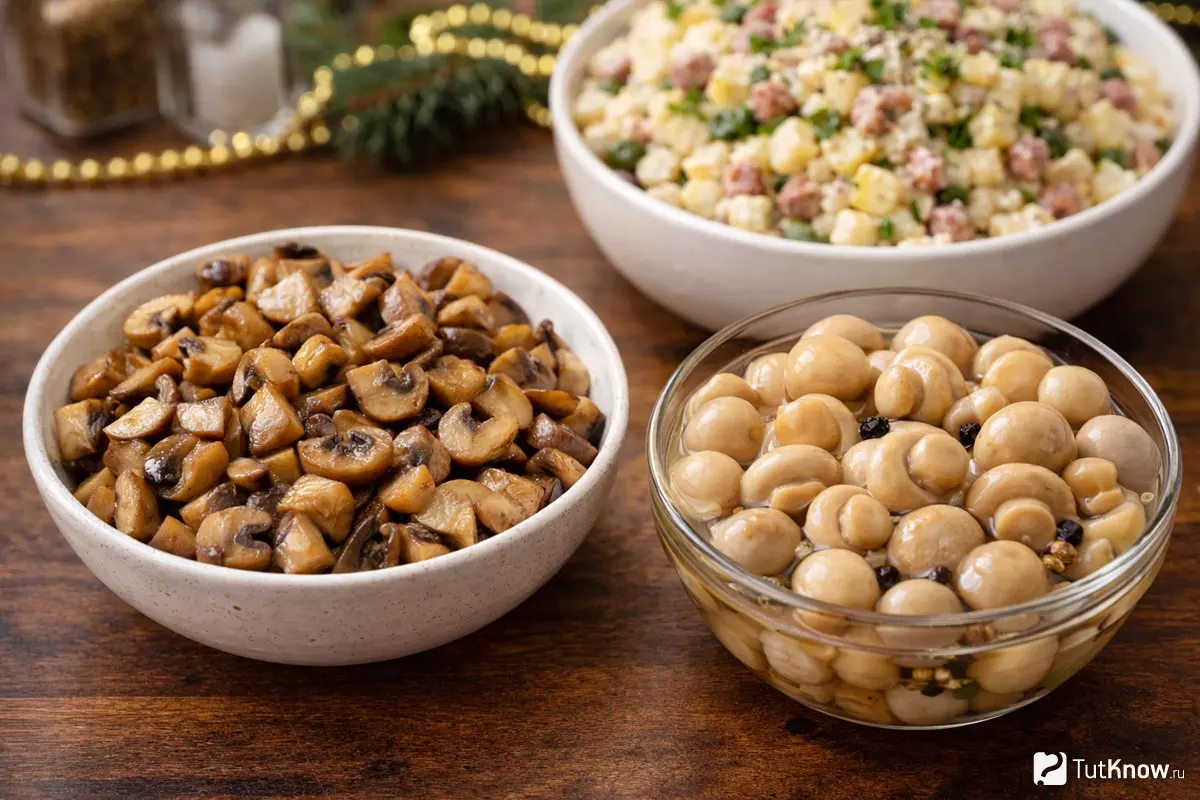 Если хочется подчеркнуть насыщенность и глубину вкуса, выбирайте обжаренные грибы. Для тех, кто предпочитает лёгкость и пикантность, отлично подойдут маринованные. Некоторые хозяйки совмещают оба вида, чтобы получить сложный и многослойный вкус. В любом случае, выбор зависит от ваших предпочтений и стиля праздничного стола.