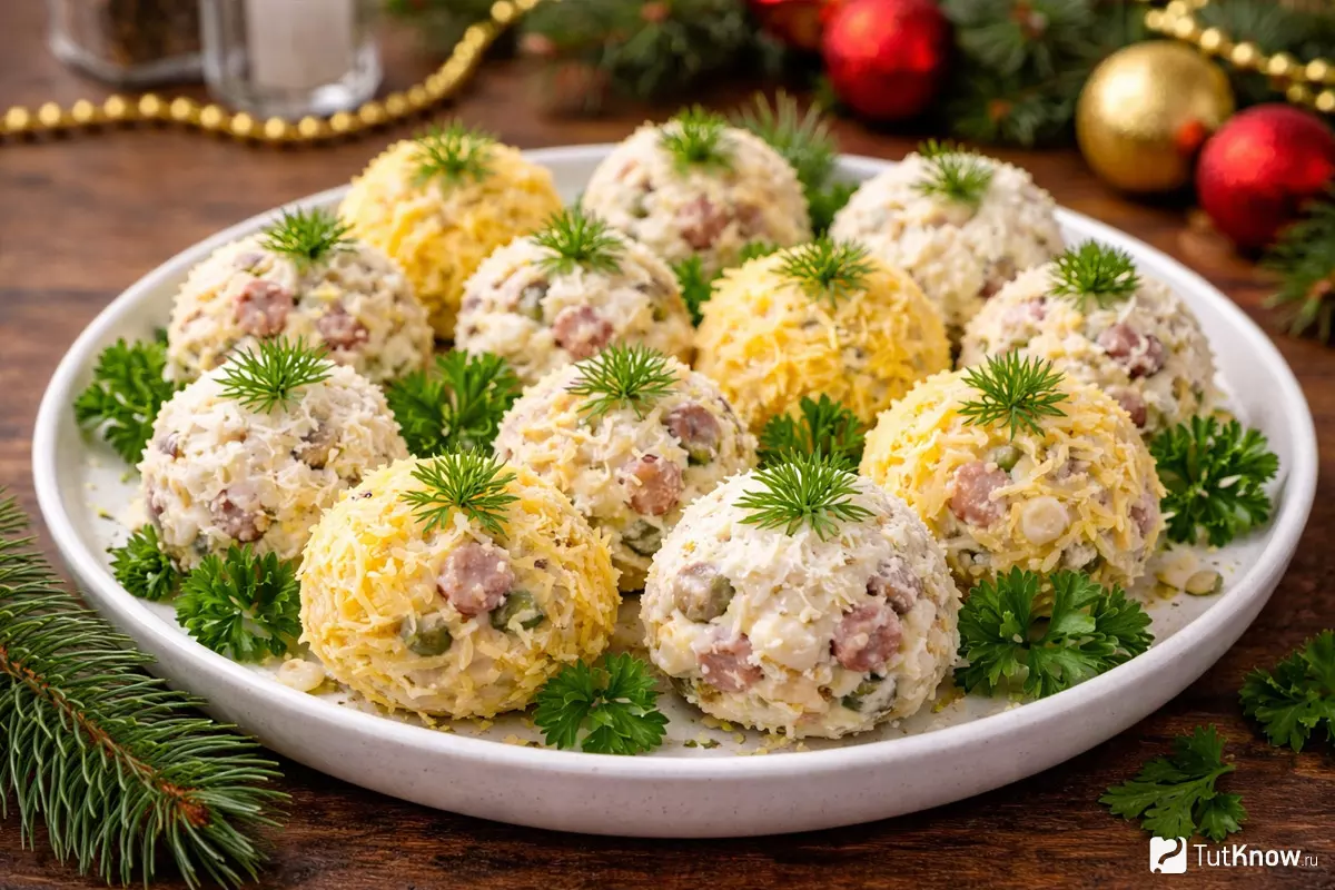 | Мини-шарики | Салат, сыр, зелень | Слепить шарики и выложить на листья салата |