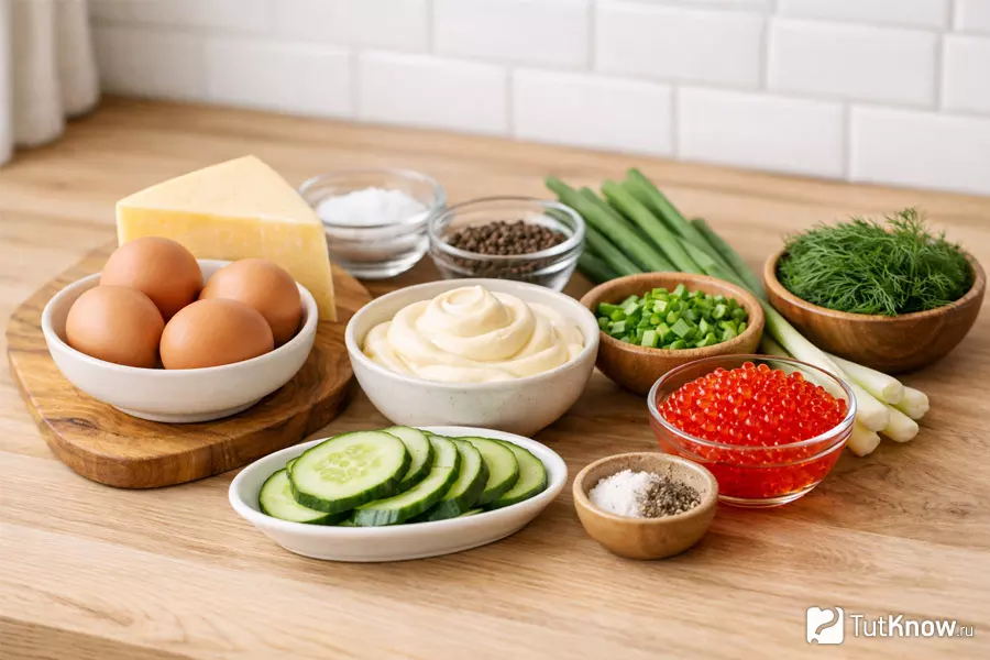 Салат с яйцом и сыром — это простое и быстрое в приготовлении закусочное блюдо, идеально подходящее для новогоднего стола. Основу составляют варёные яйца и твёрдый или плавленый сыр, дополненные лёгкой заправкой. Такой салат удобен в подаче и популярен благодаря доступности ингредиентов.