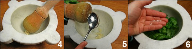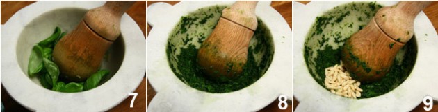 7-8. Измельчить листья до однородной ярко-зелёной массы с соком базилика. Тут нужно хорошенько поработать пестиком и максимально измельчить им листья.