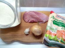 1. Мясо помойте, срежьте пленку с жилами, если имеется много жира, то удалите его. Установите мясорубку со средней решеткой и перекрутите свинину.