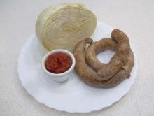 Готовую тушеную капусту в томате с колбасными изделиями сервируйте к столу в теплом, горячем или холодном виде. Она вкусная любая.