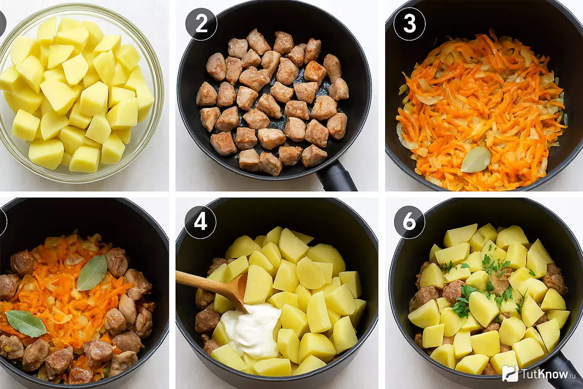 Важно нарезать картофель и мясо одинаковыми кусочками, чтобы они готовились равномерно. Слишком крупные куски картофеля могут не прожариться, а слишком мелкие куски мяса могут пересохнуть.