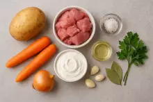 Этот вариант предполагает запекание картофеля и мяса в духовке, что позволяет сохранить все соки и ароматы.