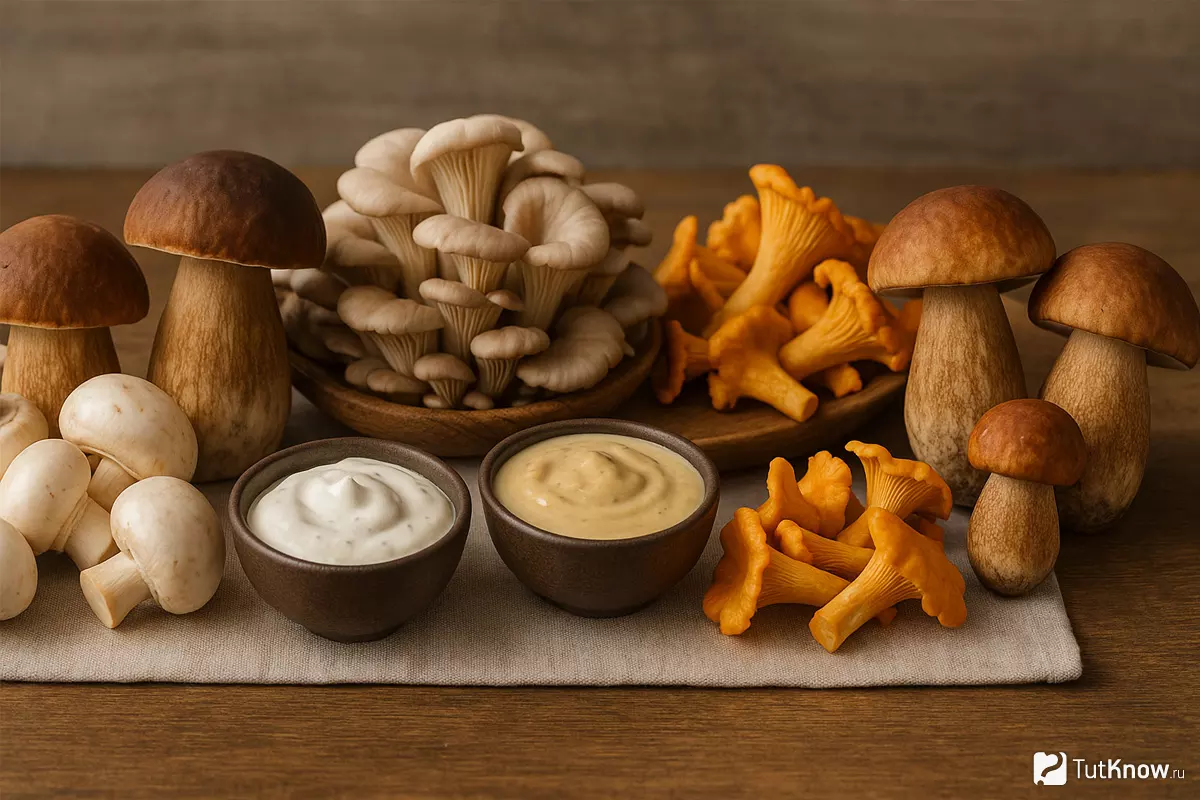 Шампиньоны | Доступны круглый год, легко готовятся | Нежный, с легким ореховым оттенком |