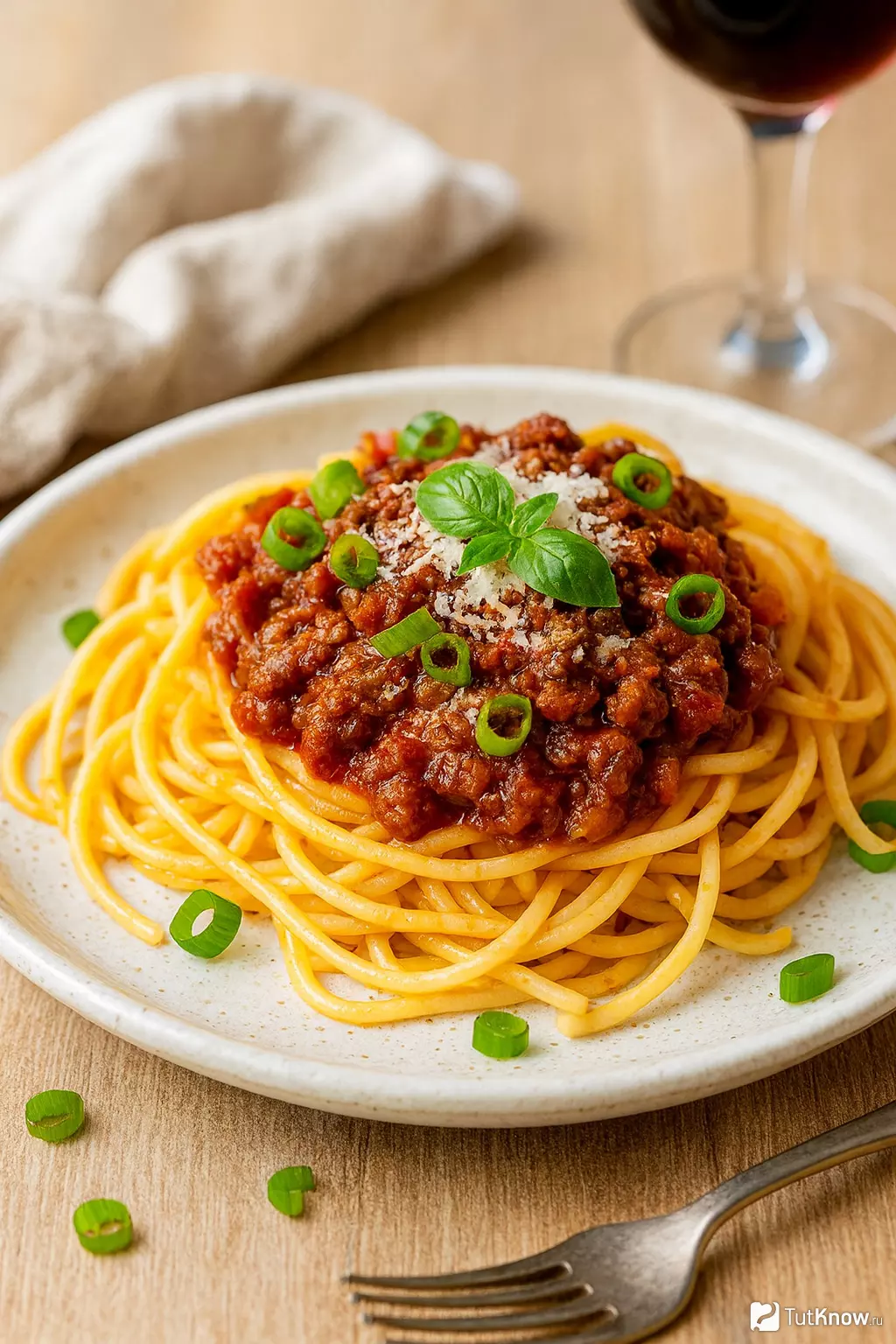 Готовая паста Болоньезе обладает насыщенным и ароматным вкусом благодаря сочетанию томатного соуса, специй и красного вина. Хранить блюдо можно в холодильнике до двух дней, но я предпочитаю наслаждаться им сразу после приготовления, пока оно свежее. Для подачи можно использовать свежий базилик или петрушку, которые добавят свежести и яркости. Обычно я готовлю это блюдо для семейных ужинов, и оно всегда вызывает восторг у всех за столом.