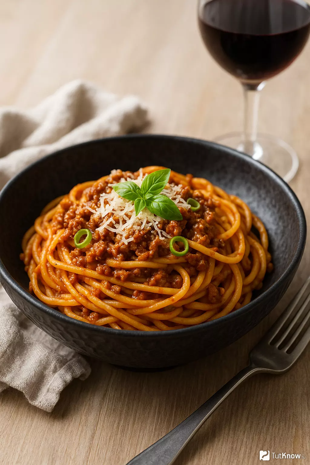Паста с соусом болоньезе и мясным фаршем — классическое итальянское блюдо, известное насыщенным вкусом и простотой приготовления. В его состав входят томатный соус, обжаренный фарш, лук, морковь и сельдерей, что делает блюдо питательным и сбалансированным. Оно идеально подходит для семейного ужина или обеда с друзьями.
