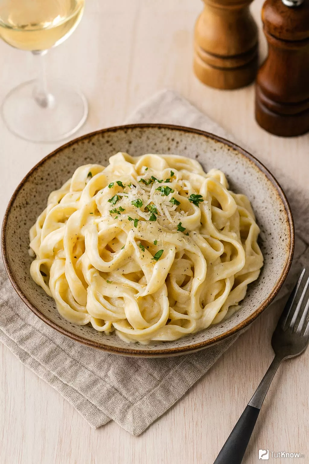 Готовое блюдо обладает насыщенным вкусом сыра и масляной нежностью, которая достигается без добавления сливок. Соус получается гладким и шелковистым — это результат правильной эмульсии воды, масла и пармезана. Хранить такую пасту можно не дольше суток в холодильнике, но лучше наслаждаться ею сразу после приготовления, пока соус тёплый и обволакивающий. Феттучини Альфредо отлично сочетается с кусочком свежего хлеба или лёгким зелёным салатом. Я часто готовлю это блюдо для семейных ужинов — и каждый раз оно исчезает с тарелок без остатка.