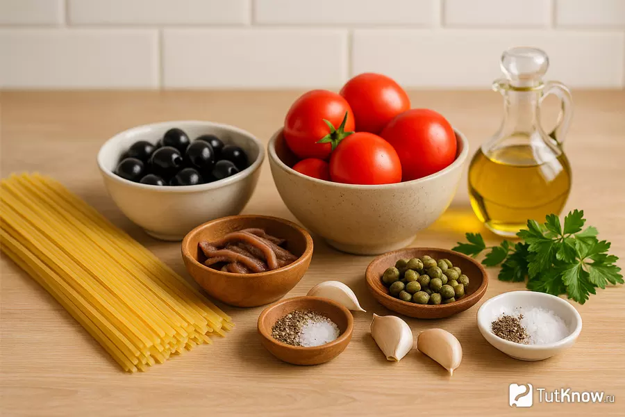 Ингредиенты, используемые в этом рецепте, хорошо отражают южноитальянскую кухню. Основные компоненты — это томаты, оливки, анчоусы, каперсы и чеснок. Эти продукты были легкодоступны в регионе, что делало пасту популярной среди местных жителей. Кроме того, сочетание этих ингредиентов создает насыщенный вкус, который быстро завоевал популярность не только в Италии, но и за её пределами.