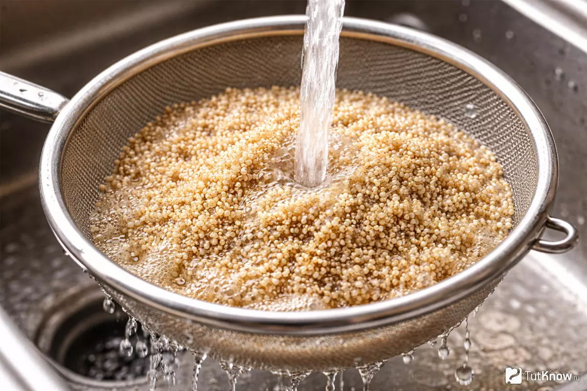 Совет: если хотите максимально убрать горечь, повторите промывку дважды. Это особенно важно для красной и чёрной киноа.