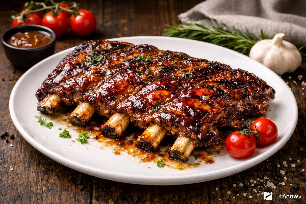 Правильно подобранный гарнир и соус помогают раскрыть вкус свиных ребрышек и сделать подачу блюда завершённой.