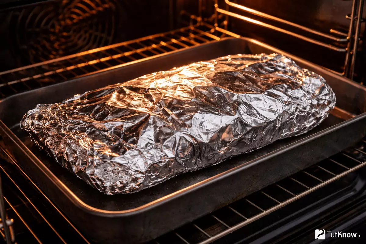 Чтобы ребрышки не потеряли сок, фольгу лучше использовать в 2 слоя и оставлять немного “воздуха” внутри — так мясо будет именно томиться.