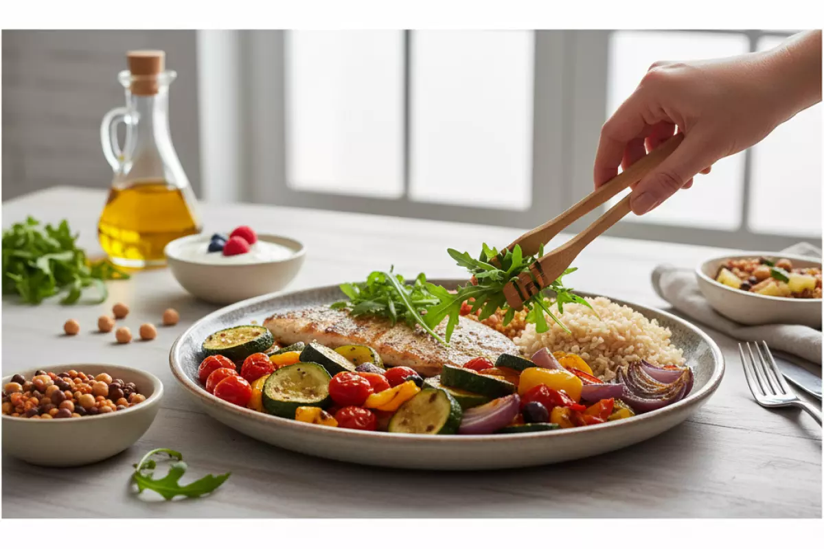 Это не «жёсткая схема на 2 недели», а понятный способ собирать тарелку так, чтобы еды было много, а лишние калории не набегали незаметно. Основа — овощи, бобовые, цельные крупы, рыба, оливковое масло и умеренные порции белка. Сладкое и ультрапереработанные продукты не запрещены навсегда, но уходят на редкие случаи.