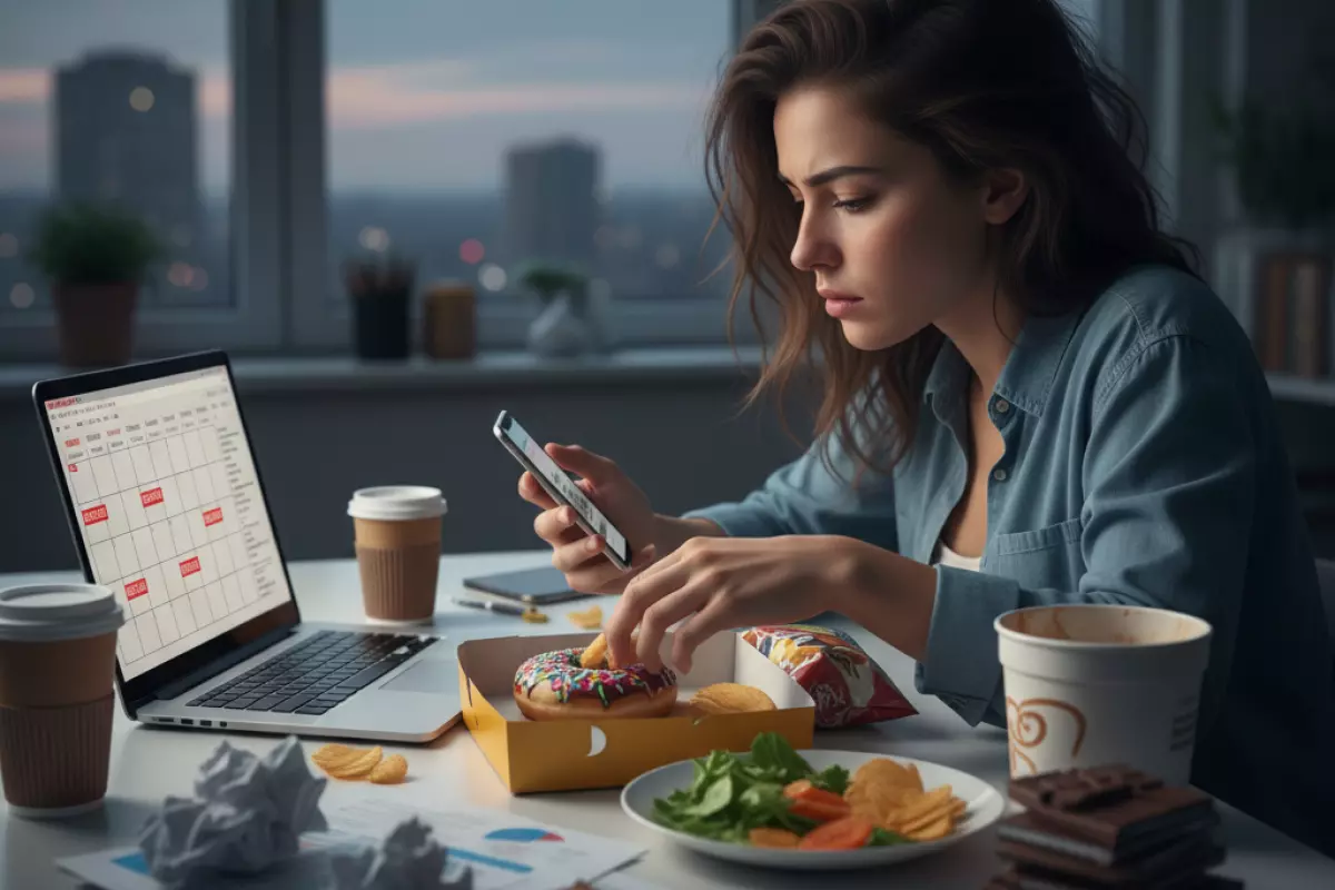 Длительное напряжение часто «перекраивает» пищевое поведение: мозг начинает искать быстрый способ успокоиться, а еда оказывается самым доступным вариантом. На фоне постоянных дедлайнов и недосыпа растёт тяга к калорийным продуктам, а сигналы сытости становятся менее заметными.