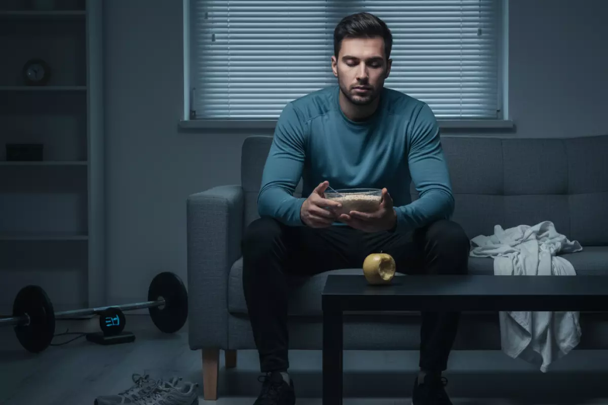 Жёсткие ограничения часто приводят к срывам и перееданиям. В среднем по неделе дефицит может исчезать, а усталость и голод остаются. На этом фоне человек режет активность, тренируется хуже, спит меньше — и создаётся ощущение, что «всё встало».
