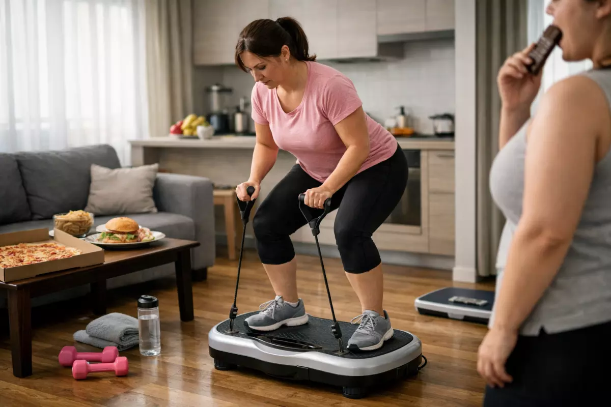 Самый реалистичный подход — не садиться на строгую диету, а убрать то, что незаметно даёт избыток калорий: сладкие напитки, частые перекусы, большие порции вечером. На таком фоне виброплатформа уже может сыграть роль и помочь поддерживать режим.