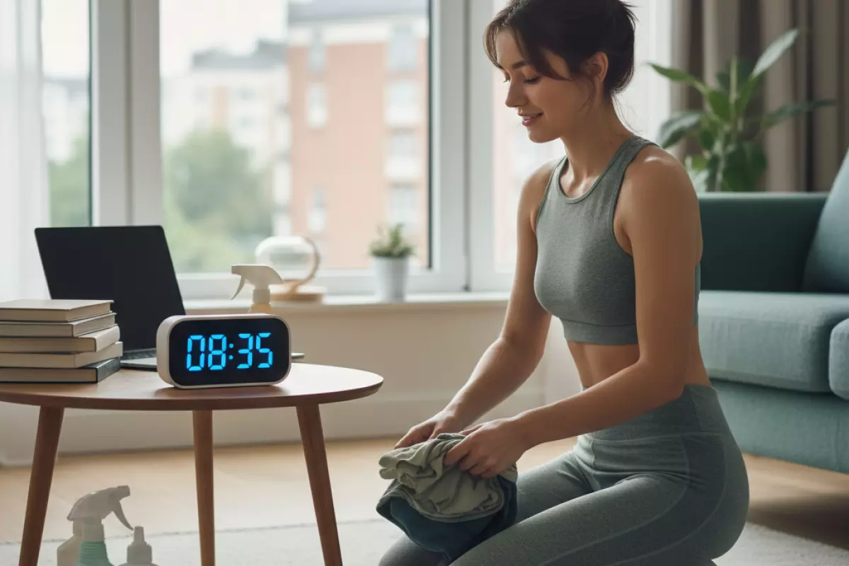 Выберите короткий ритуал в одно и то же время (например, перед сном). Таймер дисциплинирует: вы не «убираете весь дом», а делаете быстрый проход по ключевым точкам.