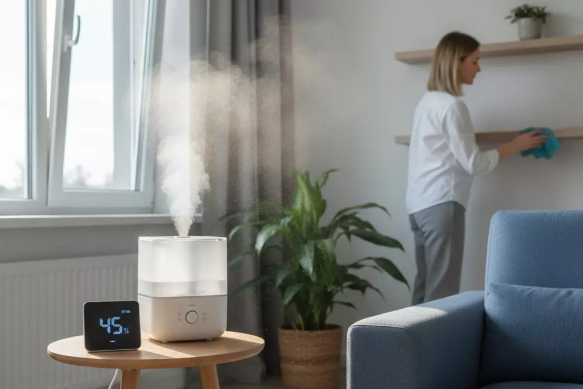 Сухой воздух делает пыль «летучей»: частицы легче поднимаются от шагов, текстиля и потоков от батарей, дольше висят в комнате и быстрее оседают на горизонтальных поверхностях. А при слишком высокой сырости грязь охотнее липнет к полу и мебели, плюс растёт риск плесени. Поэтому задача простая: держать показатели в комфортном коридоре и обновлять воздух так, чтобы не разгонять мусор по дому.