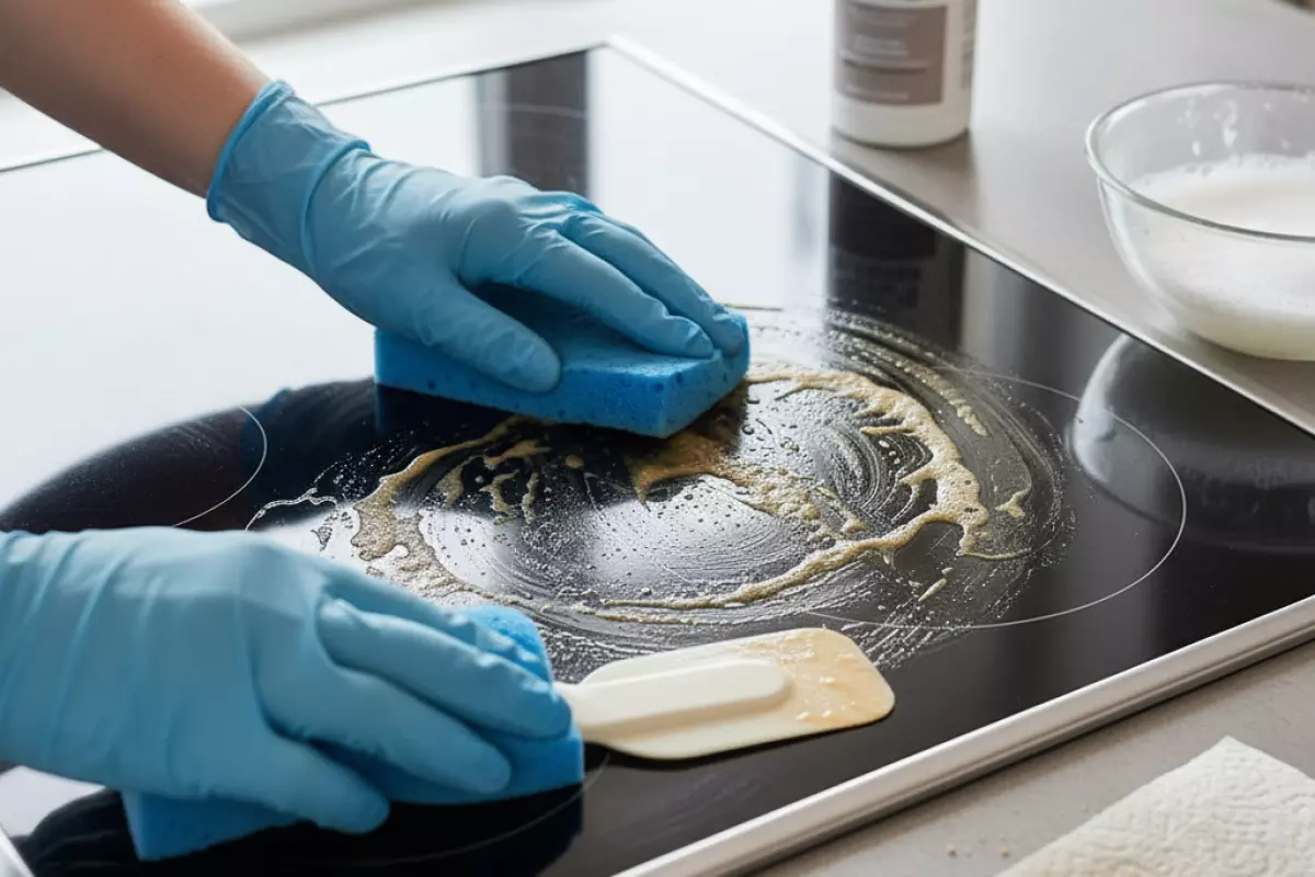 | Стеклокерамика | Мягкий гель, средство для посуды, немного уксуса в воде | Микрофибра, мягкая губка; при необходимости скребок для стеклокерамики | Сухая сода, порошки, жесткие губки, чистка по горячей поверхности | Сначала размочить, потом вести скребок под малым углом без нажима |