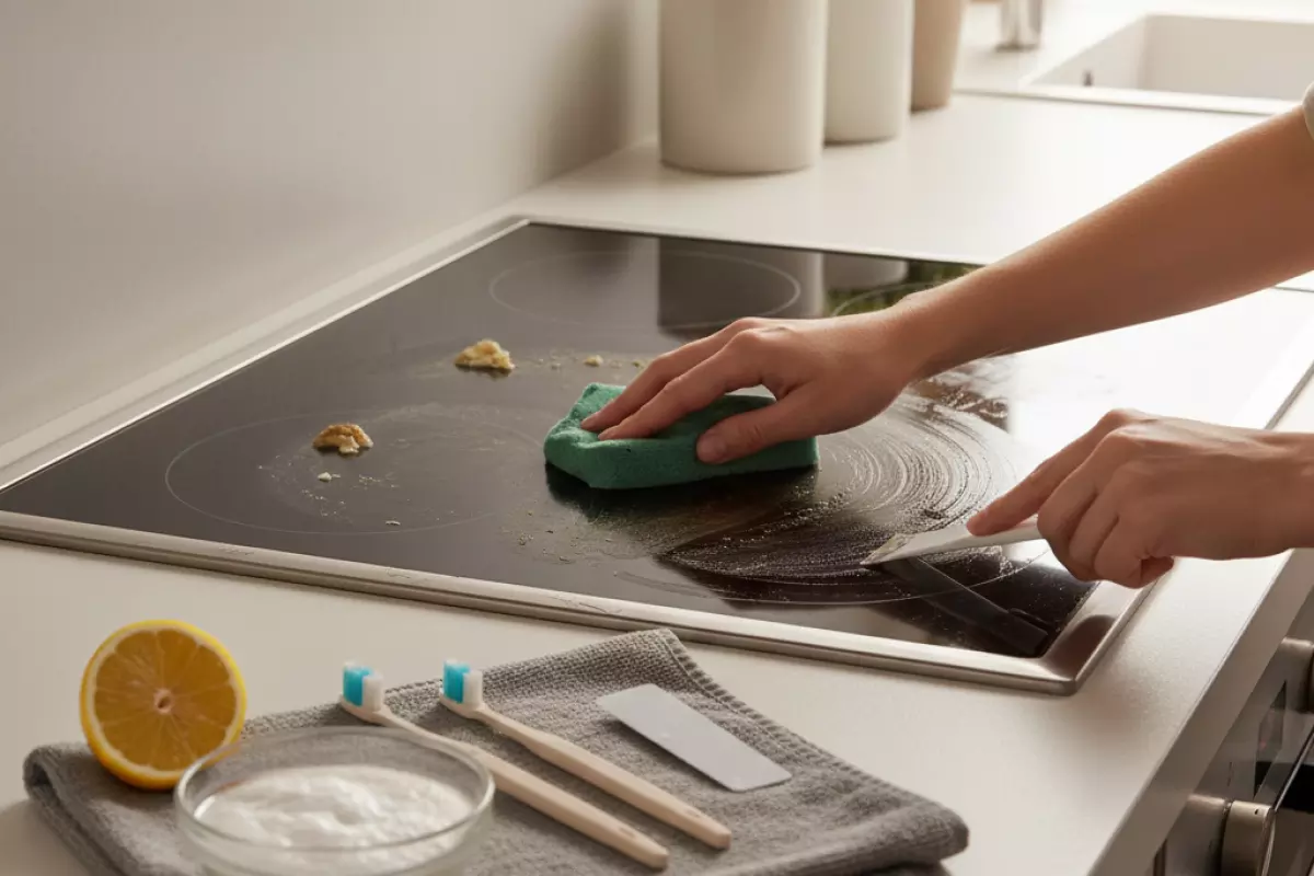 | Плита и переключатели | Тёплая поверхность «запекает» капли | Масло, сладкие подливы, молочные брызги | После 1–2 готовок |