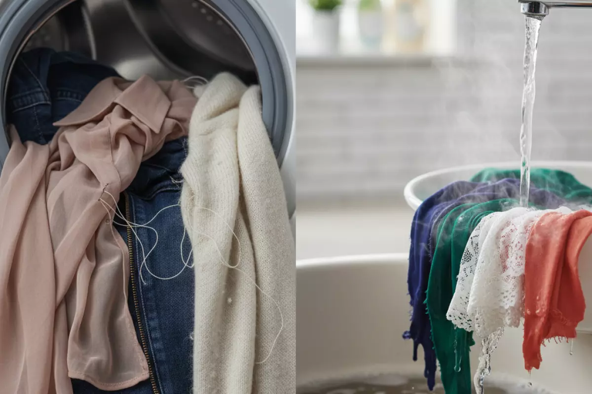 | Кружево, сетка, тюль | Зацепки, разрывы, потеря формы | Стирка без мешка, соседство с молниями и крючками | Деликатный режим, иногда только ручная стирка |