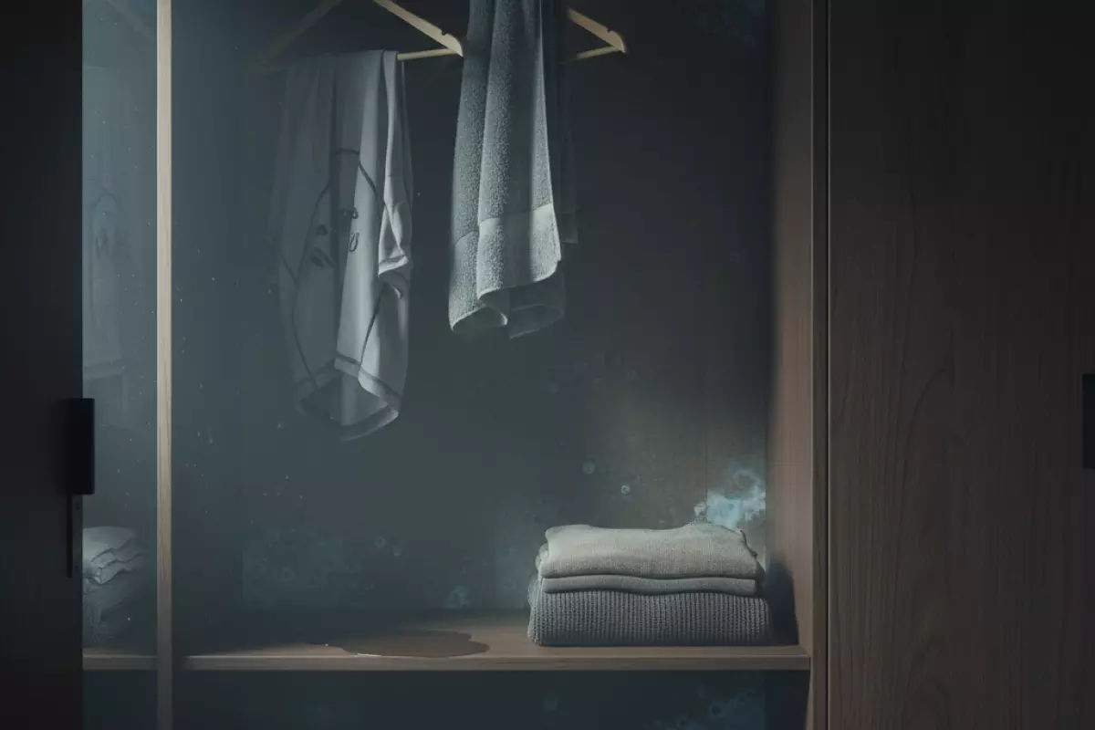 Если в шкафу снова появляется «болотный» оттенок, это обычно сигнал про влажность: проверь, не стоят ли вещи вплотную к задней стенке, не перекрыта ли вентиляция и не лежит ли внутри что-то недосушенное (полотенца, спортивная форма, обувь).