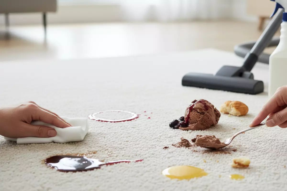 Следы от чая, кофе, сока, вина, соусов и десертов отличаются по составу, но общий принцип один: убрать остатки как можно быстрее и не дать красителю закрепиться. Жидкость нужно промакивать, а не растирать. Если на ковёр попала еда, сначала удаляют плотную часть, и только потом переходят к влажной чистке.