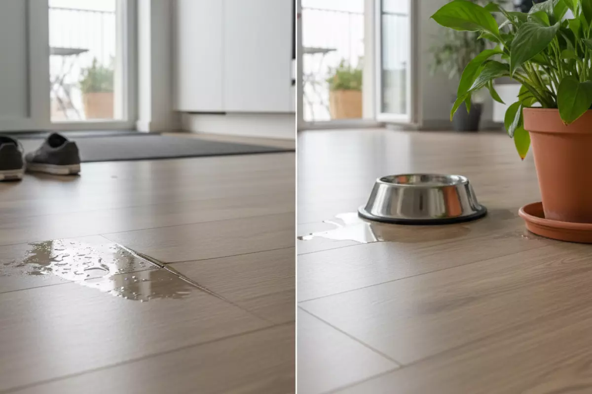 Влага опасна не столько для верхней поверхности, сколько для стыков и торцов панелей. Именно туда вода попадает незаметно, а последствия проявляются позже: кромки приподнимаются, пол начинает скрипеть, появляются вздутия и неровности. Поэтому защита строится на профилактике, а не на попытке «высушить потом».