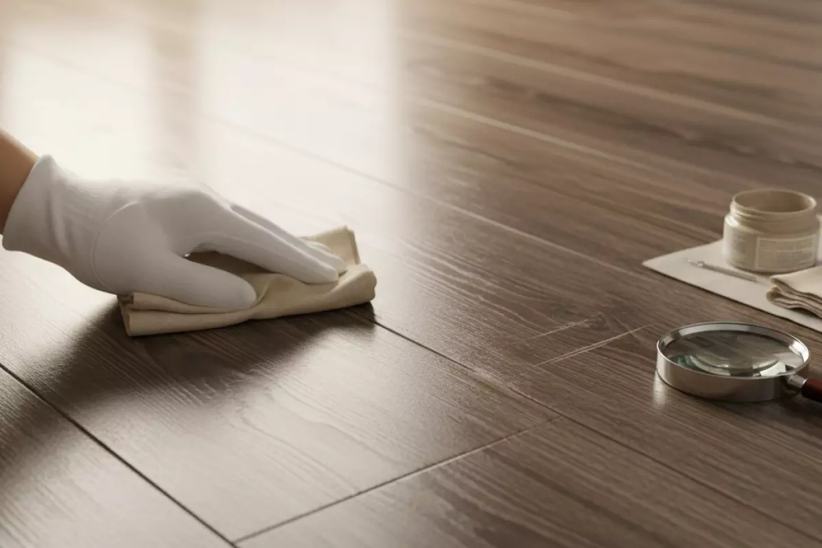 Естественный блеск ламината зависит от чистоты верхнего слоя, а не от дополнительных покрытий. Если убрать налет и не царапать поверхность, пол выглядит ровнее и свежее даже без специальных «усилителей блеска».
